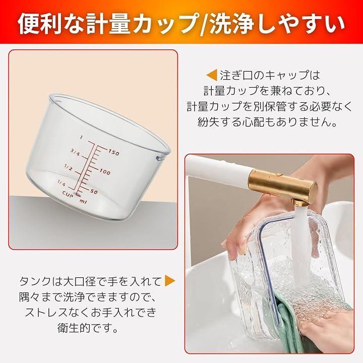 「簡単管理」注ぎ口のキャップは、計量カップを兼ねており、本体一体型ですので計量カップを別保管する必要なく、探す手間も紛失する心配もありません。