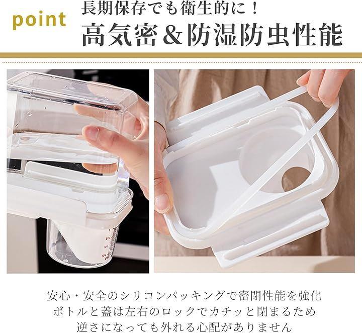 「密閉で鮮度長持ち」 シリコンパッキン+左右ロック構造により高気密設計を実現、防湿・防虫・防塵でドライフードの鮮度をしっかりキープ。