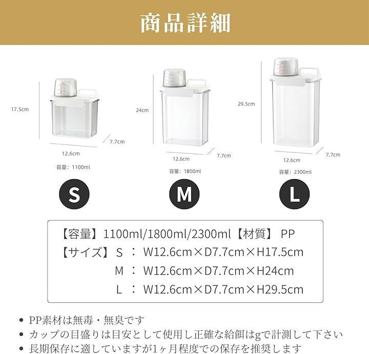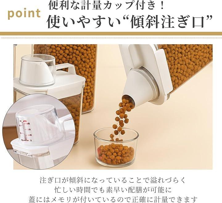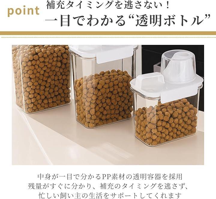 「選べる3サイズ」 S(1100 ml)、M(1800 ml)、L(2300 ml)のラインナップで、愛犬の食べる量やキッチン収納に合わせて最適サイズが選べ、無駄なストックを防ぎます。