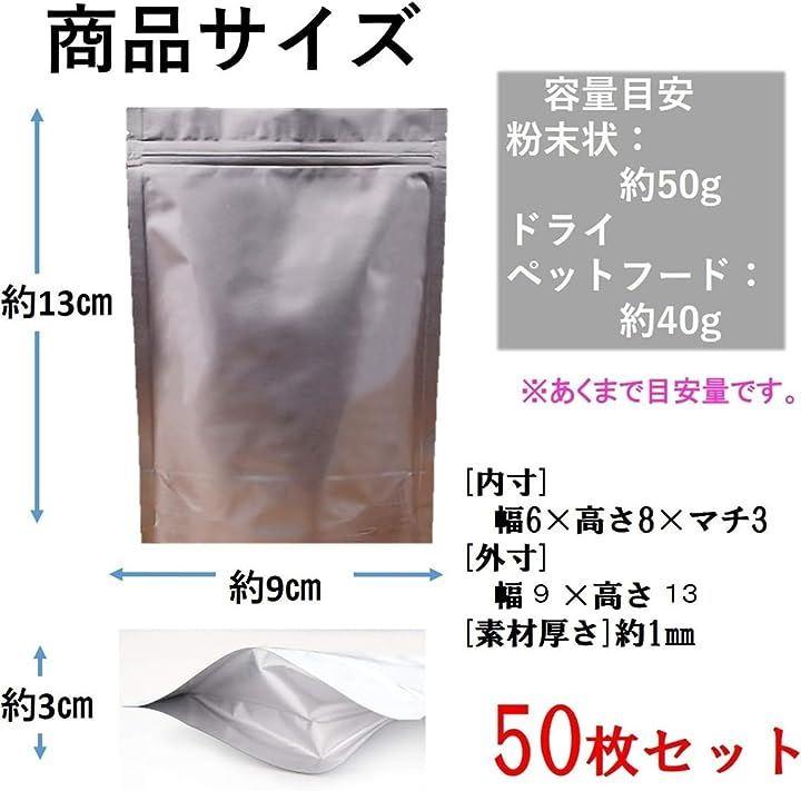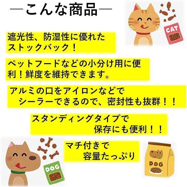 ・「2サイズからお選びください」20枚 幅 約18cm 高さ 約26cm 粉で約650g、ペットフードで約490g /50枚 9cmx13cm 粉で約50g、ペットフードで約40g・「こんな商品」ペットフードなどの小分け用に便利。特に旅行等にいつものドライフードを持っていけるのに重宝します。