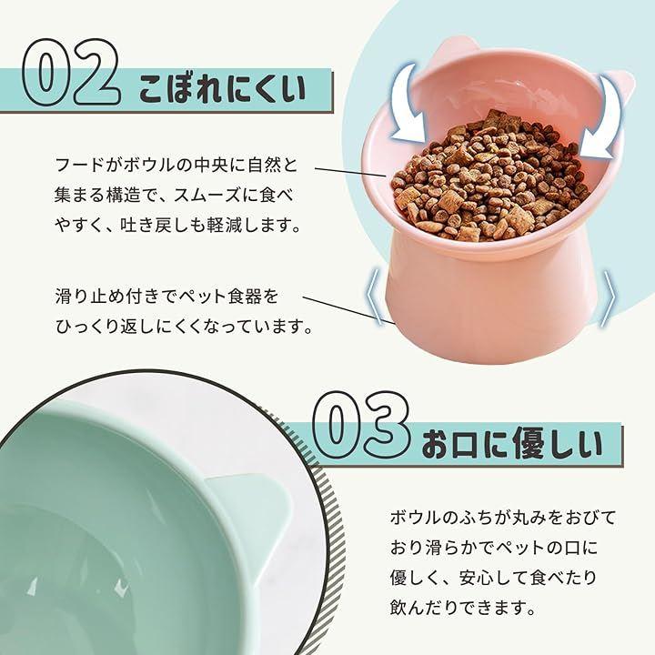 猫や小型犬が首をラクにしながら食事ができる設計で、消化の負担を減らします。