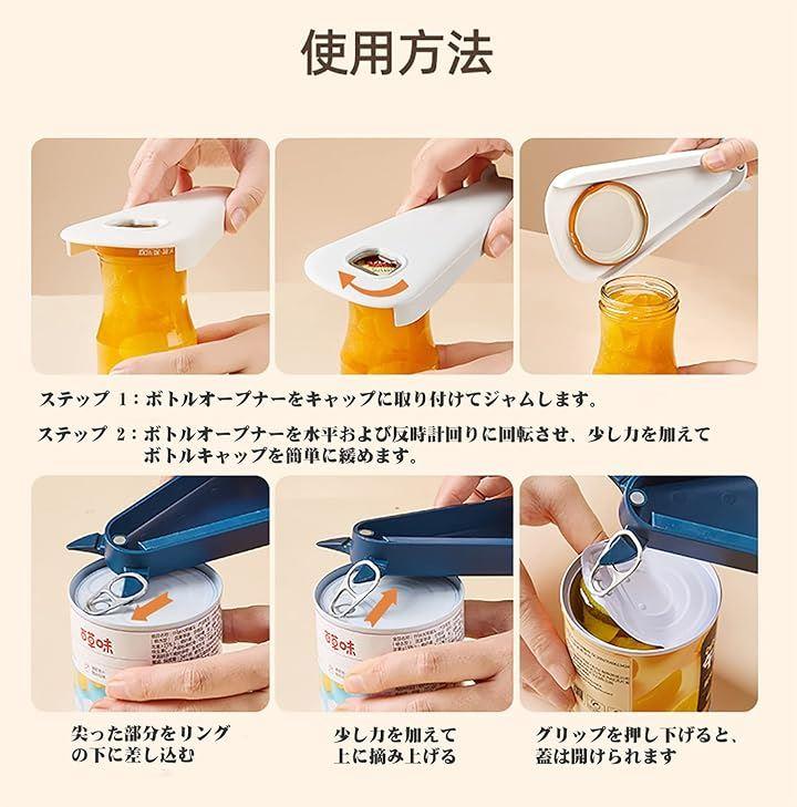 「多機能オープナー」一つあるだけで、缶開け、ネジ式丸型ボトルキャップの蓋開け、ガラスビールボトルや飲料ボトル瓶の蓋を開けることができます。