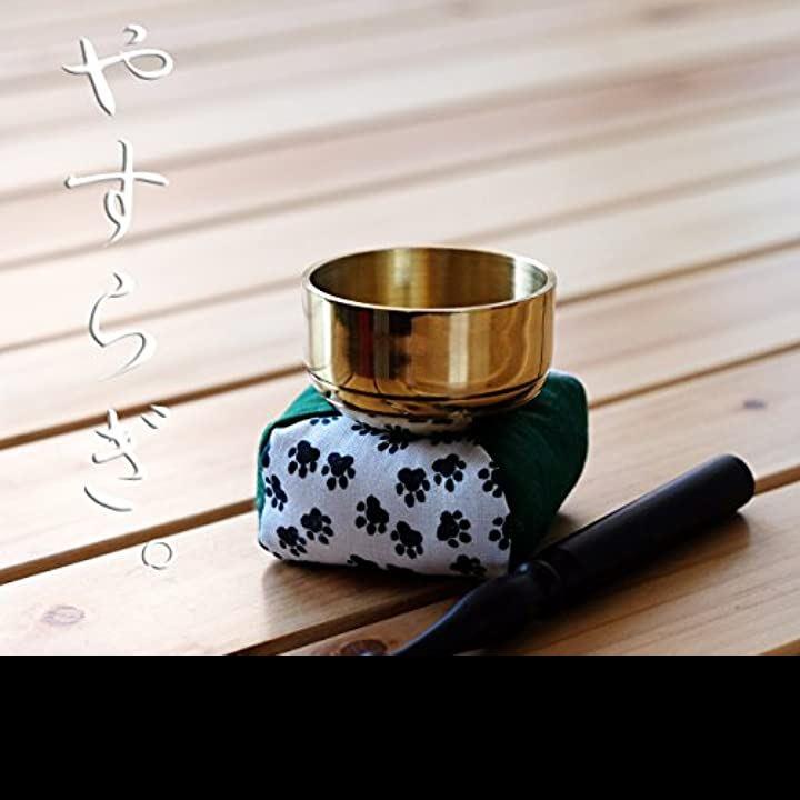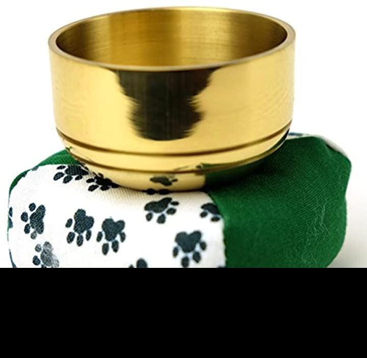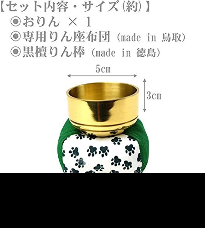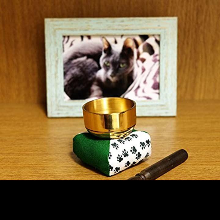 ペット仏具 セット おりん、日本製のりん棒とオリジナル足跡柄のおりん用座布団の3点セットです。