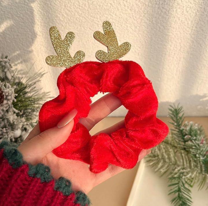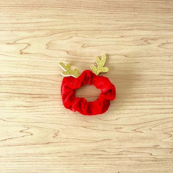 愛犬・愛猫が一気にクリスマスの主役に。 ふわふわの赤いベロア生地と、きらきらのトナカイ角がついたペット用のシュシュ風首飾りです。