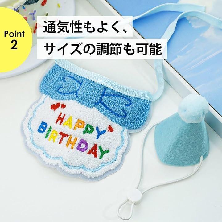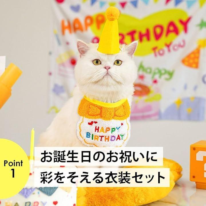 「記念日をより華やかに…」大切なペットのお誕生日のお祝いに彩をそえるペット用の帽子とよだれかけの衣装セットです。