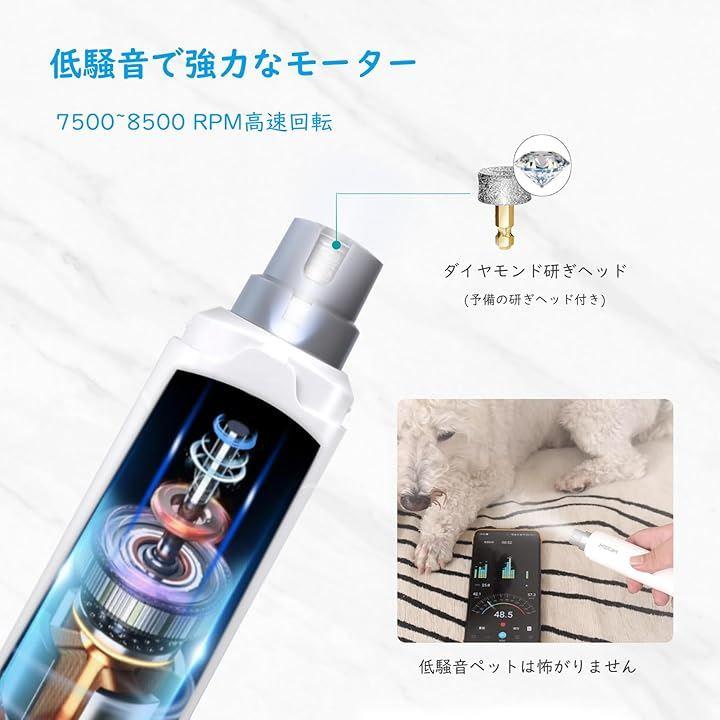 高性能電動爪やすり:MUGIM電動爪研ぎ器は、7500~8500 rpmの高速回転と静音設計を採用しており、効果的な爪研ぎをペットにお届けします。