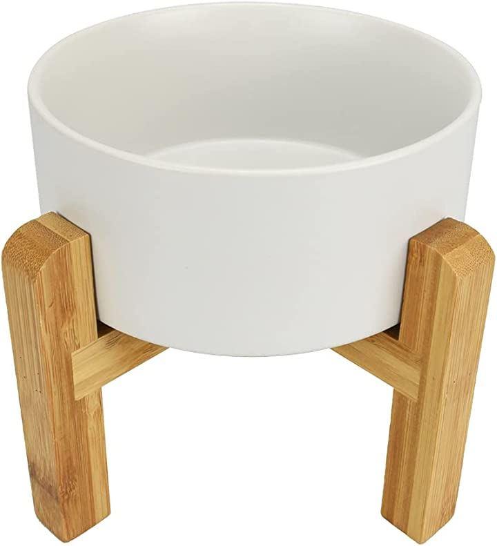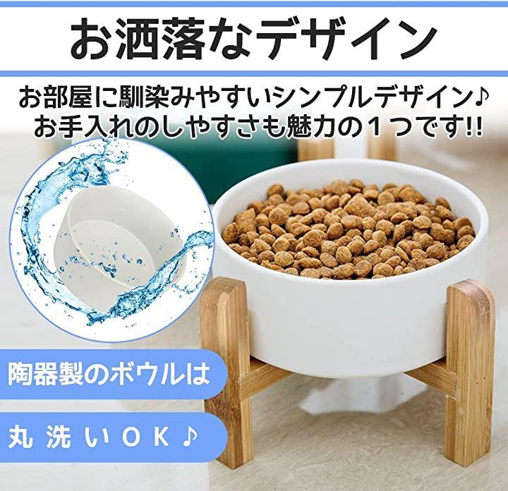 天然で厚手な木製スタンド付き、超高温で焼成された陶器製のフードボウルはエコ素材で匂いがなく、ワンちゃんや猫ちゃんなどのペットが衛生的にお食事や飲むことができます。