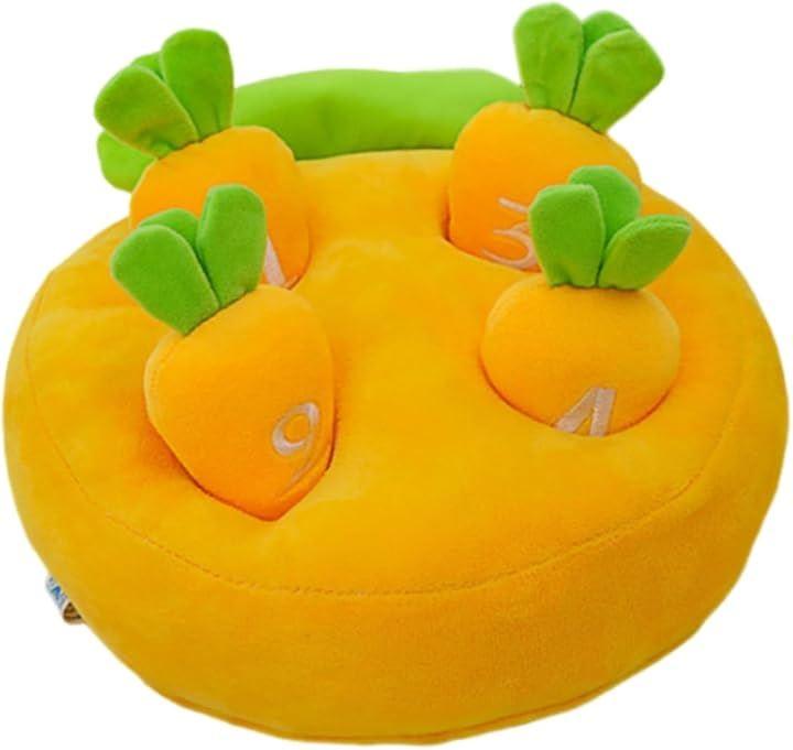 このペット用おもちゃは、4つの取り外し可能な小さなニンジンが上に埋め込まれたデザインを特徴としています。