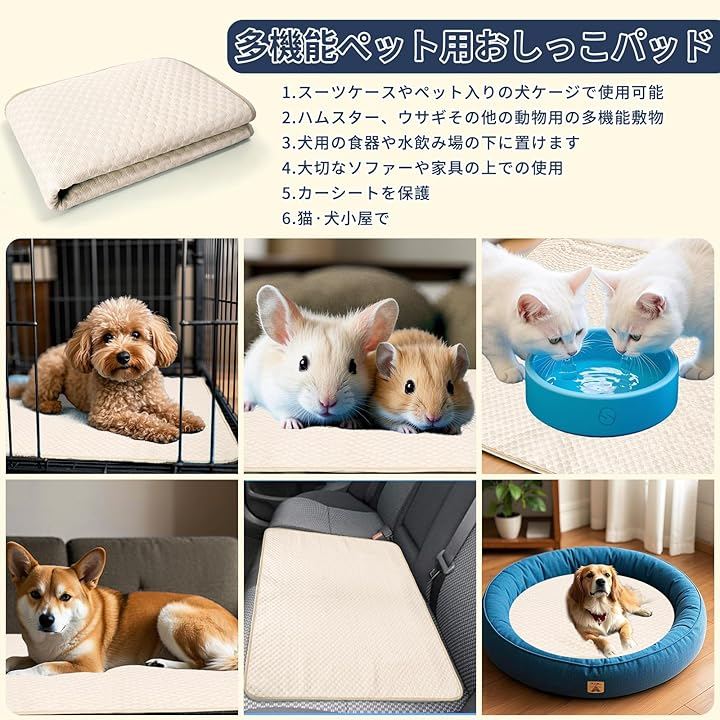 ペット用おしっこマットは、中型~大型犬はもちろん、猫・うさぎ・モルモットなど多種ペットに適適しています。