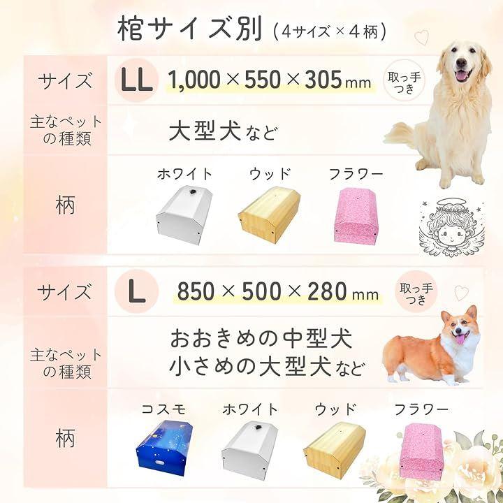 「愛するペットとの最後のお別れに」愛するペットとの最後のお別れの際に、心を込めて選びたい特別な棺を4サイズ、4種類のデザインでご用意しました