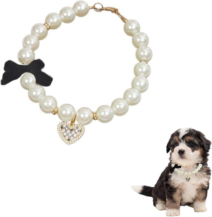 「エレガントなデザイン」上品なフェイクパールに、リボン、ラインストーンとチェック柄のハート型チャームを組み合わせた可愛らしいデザインになっています。