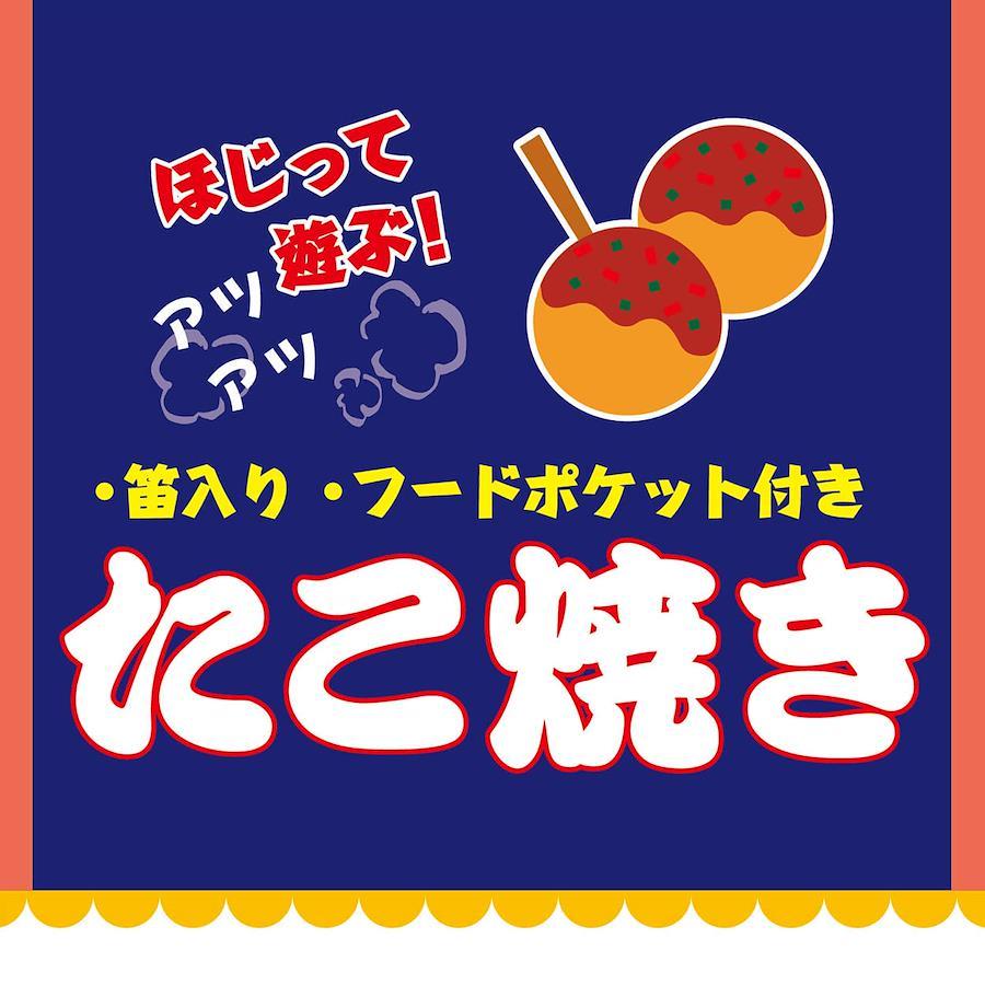 笛入りのたこ焼きボール5個と、たこ焼き器のぬいぐるみセット。大好きなフード等をたこ焼きのフードポケットに隠したり、たこ焼き器の穴に隠して、楽しく遊びましょう。