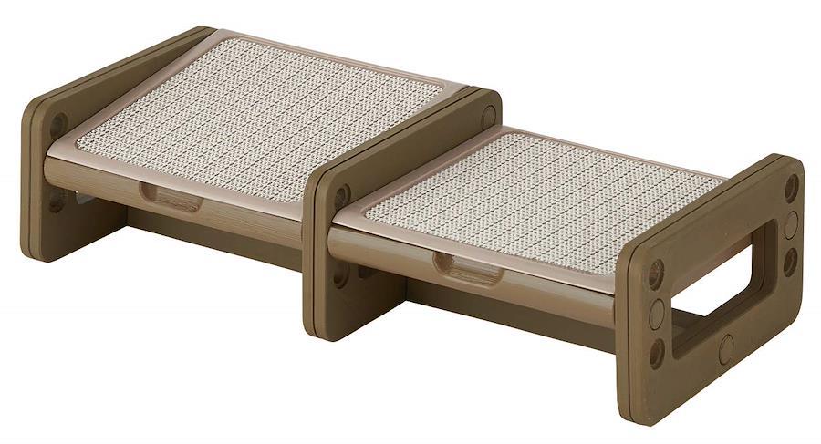 テーブルの高さと角度を調節できる食事台。食事台を使用することで、首や腰への負担が軽くなり、また角度をつけることで愛猫も食べやすくなります。高さ3段階、角度1段階節可能。