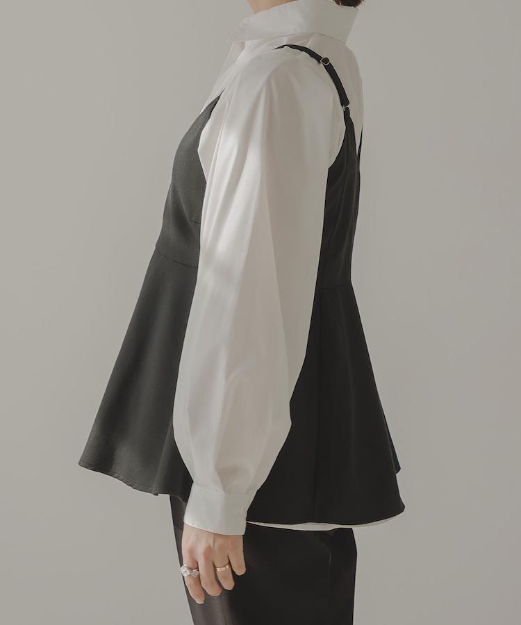 1枚プラスするだけで一気におしゃれな雰囲気にぺプラムシルエットがかわいいビスチェ風キャミ【ディティール】ウエスト位置で切り替え、裾にかけてフワッと広がるペプラムキャミソール。Tシャツやブラウスと重ねるだけでコーディネートのアクセントになります。肩紐の長さは調整可能、フロントボタンも開閉できるので着脱もラクチンです。チュニック丈なので、可愛さを出しつつさりげなく体型カバーしてくれるのも嬉しいポイント高見えする素材感で、カジュアルはもちろん、きちんと感もでる1着です。【素材】程よい厚みがありつつ、軽やかなエステルツイル素材を使用。ペプラムシルエットをきれいにキープしてくれる程よいハリ感も魅力的。春夏はTシャツやタンクトップ、秋冬はニットと、インナー次第でオールシーズン着用可能な素材感です。日常のスタイルにはもちろん、リゾートスタイルにもおすすめの1着です。**********************透け感:なし裏地:なし伸縮性:なし光沢感:なし生地の厚さ:普通**********************《生産国》中国