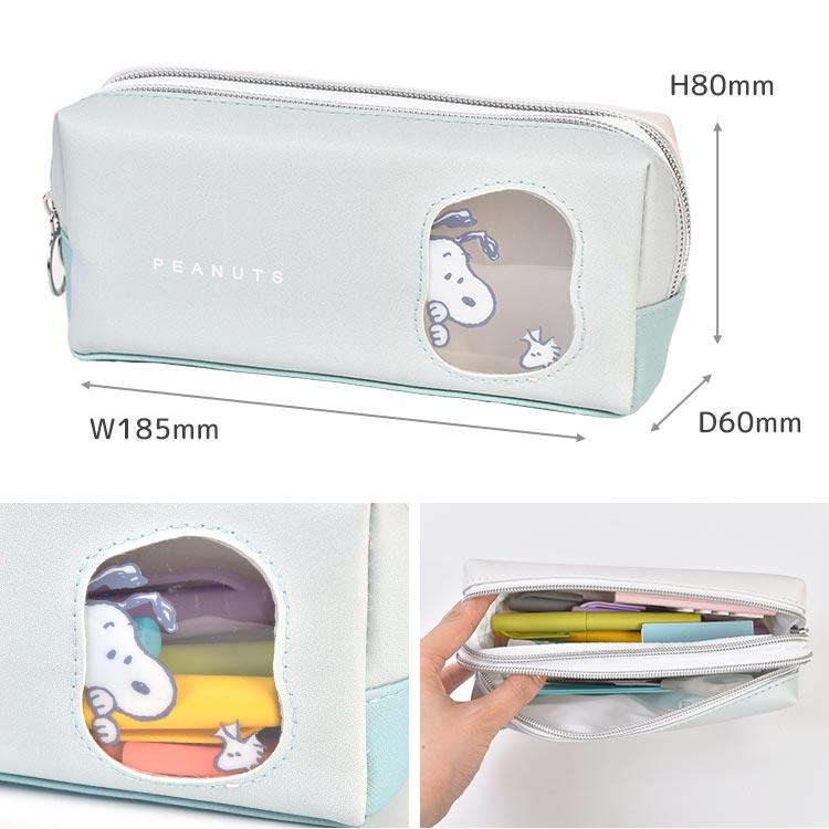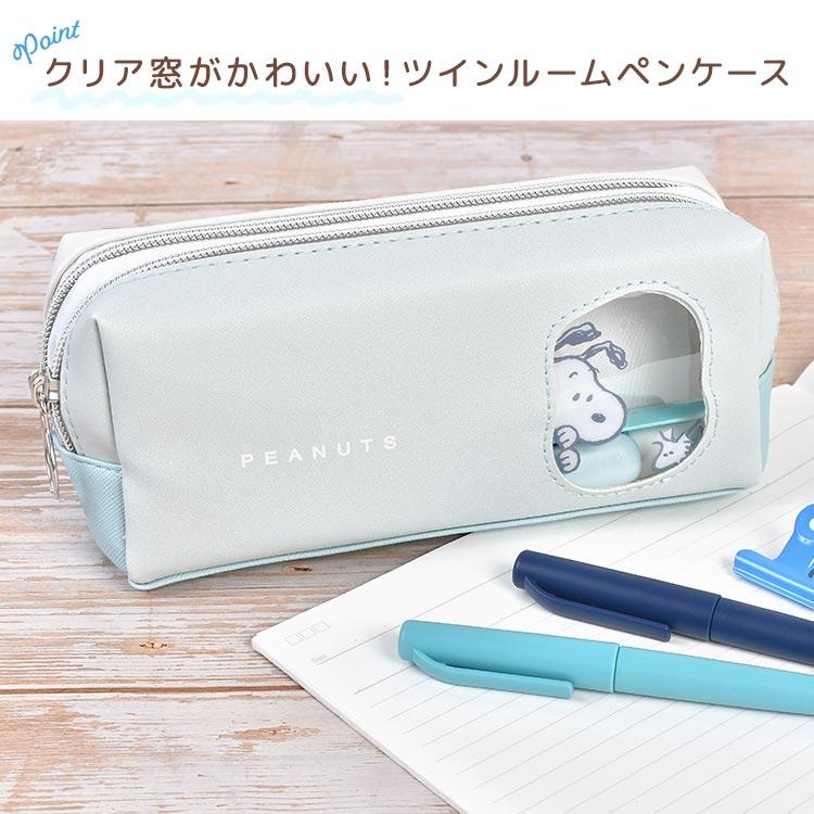 【ツインファスナーペンケース】2ルームで大容量!クリア窓がかわいい、スヌーピーのツインルームボックスペンケース。大きめのマチでかさばる文房具もしっかり収納できます。メイクポーチ、小物入れとしても◎