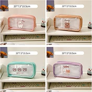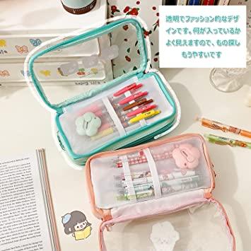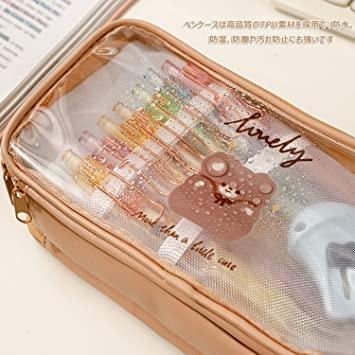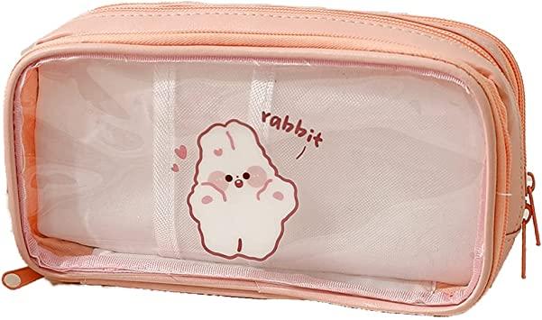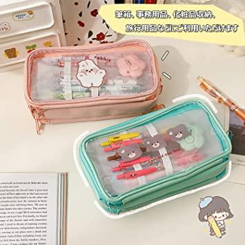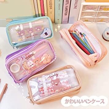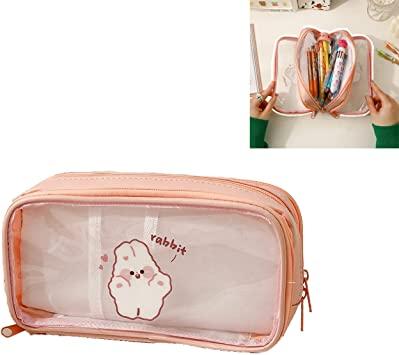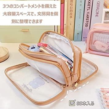 通常1-5営業日で発送:ペンケース 大容量 三層 筆箱 透明 クリア 筆入れ ペンポーチ バッグ かわいい クマ ウサギ 文具バッグ 文房具 小物入れ 化粧品収納 中小学生 高校生 大学生 男の子 女の子 ビジネス 社会人用 入学 卒園 祝い プレゼント (ピンク)色: ピンク
