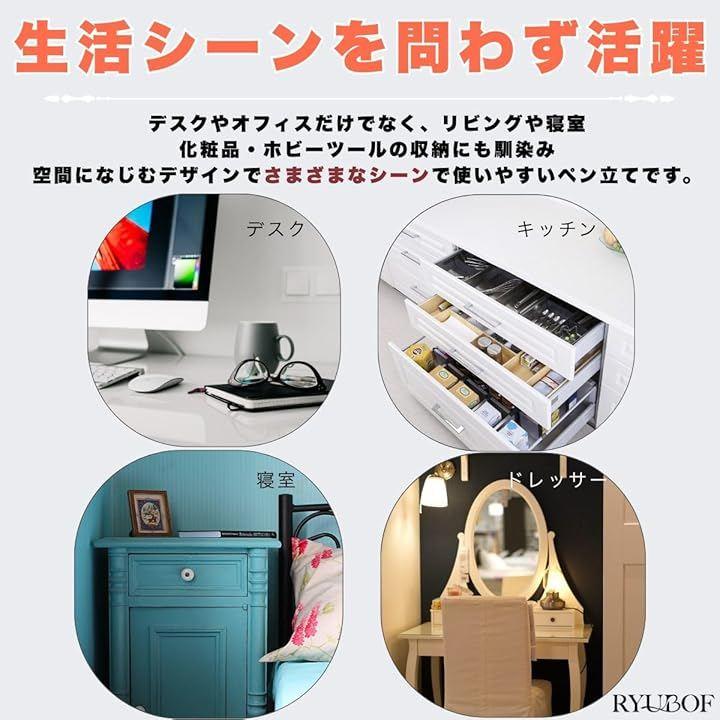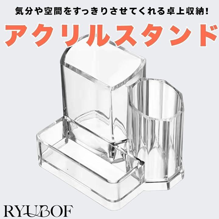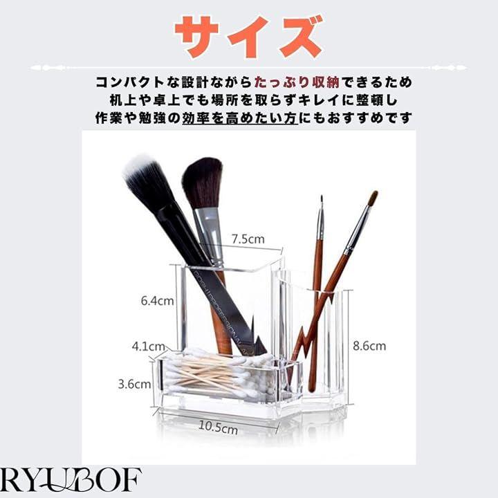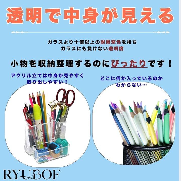 シンプルで洗練されたデザインのアクリルペンスタンドは、ペンやメイクブラシ、小物の整理にぴったり。