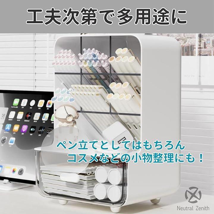 「引き出し付き」引き出しが付いていることで、ペン以外の小物や文房具(消しゴム、定規、クリップなど)を整理して収納できます。