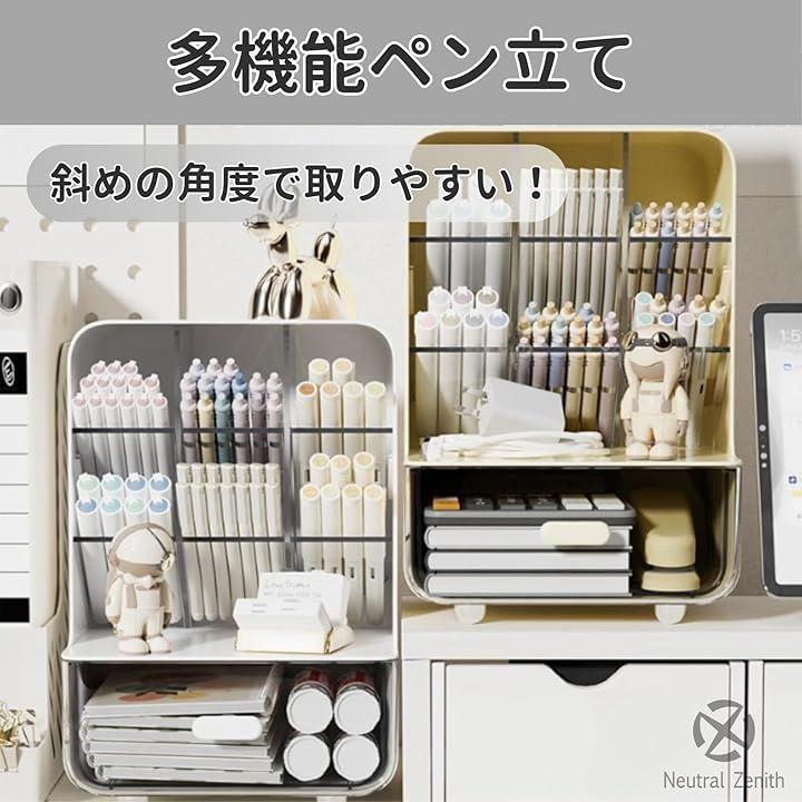 「多機能ペン立て」ペン立てが斜めの角度で設計されているため、ペンや鉛筆などを手に取りやすく使いたいアイテムを素早く見つけ取り出せます。