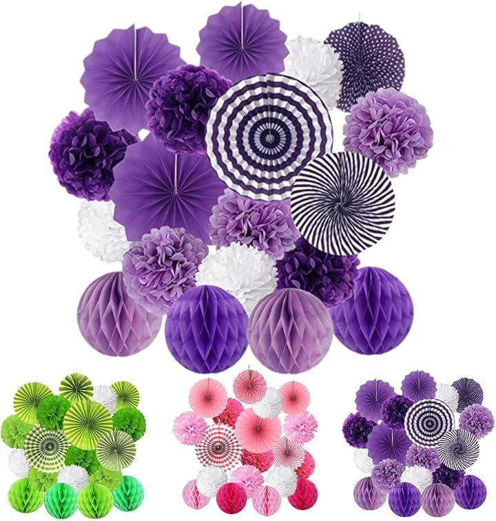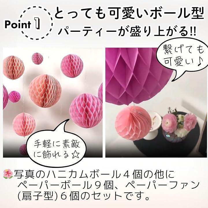 ペーパーファンとハニカムボールの組み合わせで奥行きのあるデコレーションが楽しめます。