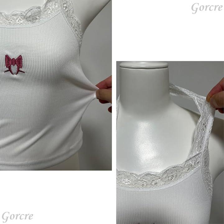 レースとフロントのリボンマークがお洒落で可愛い。ホルターネックキャミソールのお届けです。