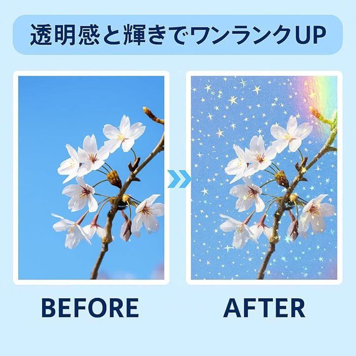 「透明感と輝きでワンランクUP」普通の写真やポスターにホログラムシートを重ねるだけで、透明感と輝きがプラスされ高級感UP。