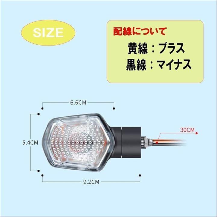 「商品内容」・本体 4個セット(配線付き/長さ約30cm)「材質」・高品質ABS「カラー」・ボディー:ブラック・レンズ:クリア「発光色」・アンバー「配線について」・黒線:マイナス・黄線:プラス「参考適合車種」・ホンダ ZOOMER X / MSX125 * 記載している車種以外にもサイズ等が合えばご使用(流用)が可能です。