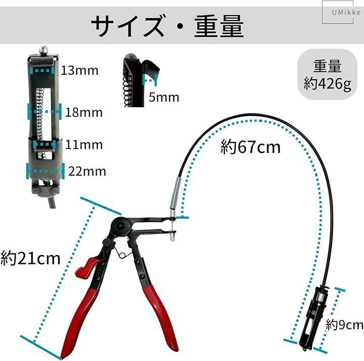 v手の届きにくい場所にあるホースクリップ(ホースクランプ)の着脱(取り付け、取り外し)の作業をサポートするための工具です。