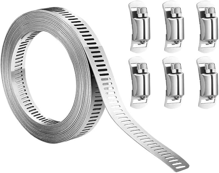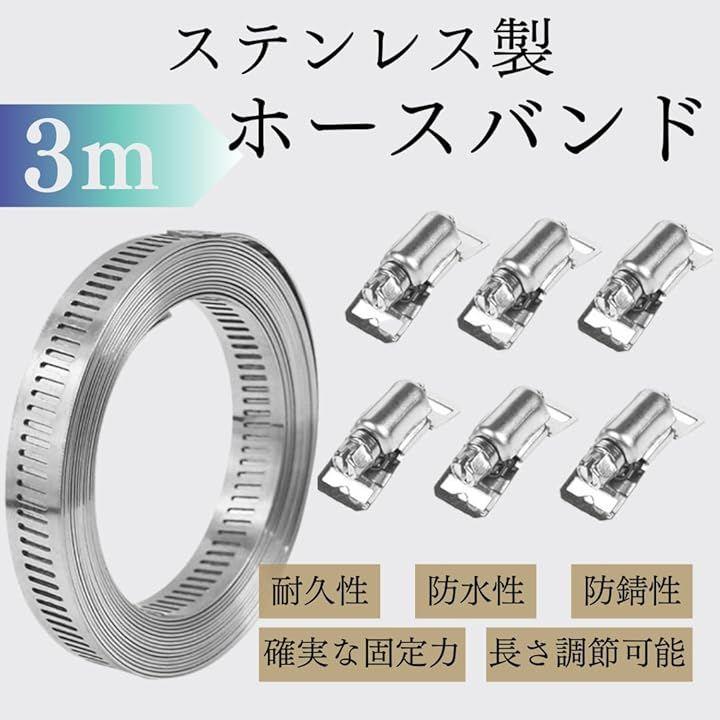 「調整自在、つなぎ止める強さ」3mステンレスホースバンド、ジッパーファスナー6個付き。
