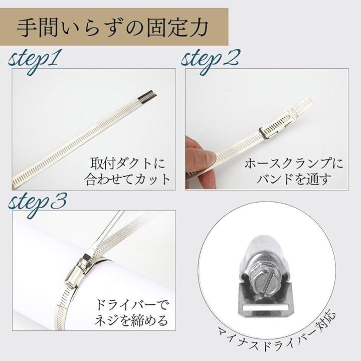 「手間いらずの固定力」ホースやダクトにフィットするホースバンドとウォーム式クランプの組み合わせセット。