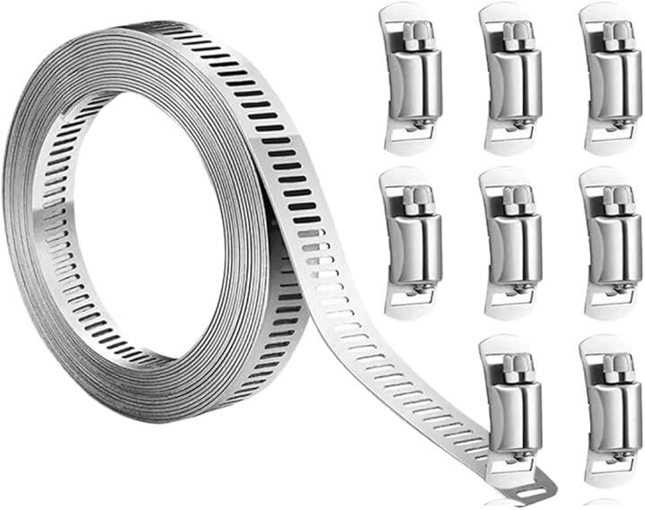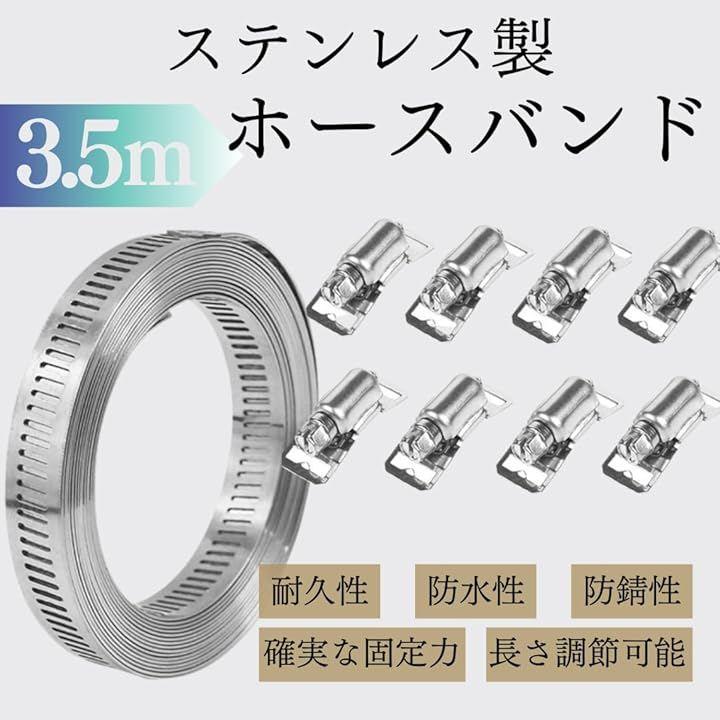 「調整自在、つなぎ止める強さ」3.5mステンレスホースバンド、ジッパーファスナー8個付き。