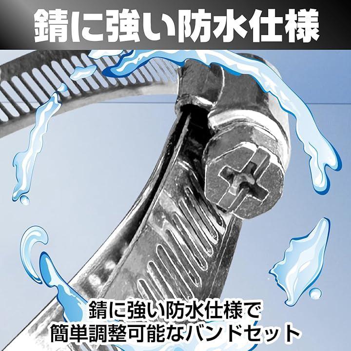 「304ステンレス鋼採用で長く使える」このステンレスバンドは、304ステンレス鋼を使用しており、屋外での使用でも錆びにくく、腐食に強い特性を持っています。