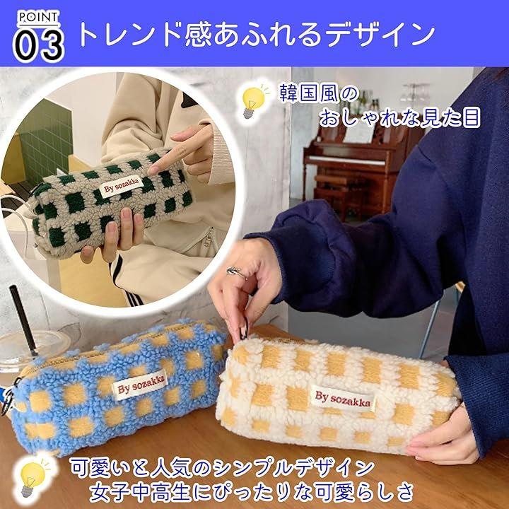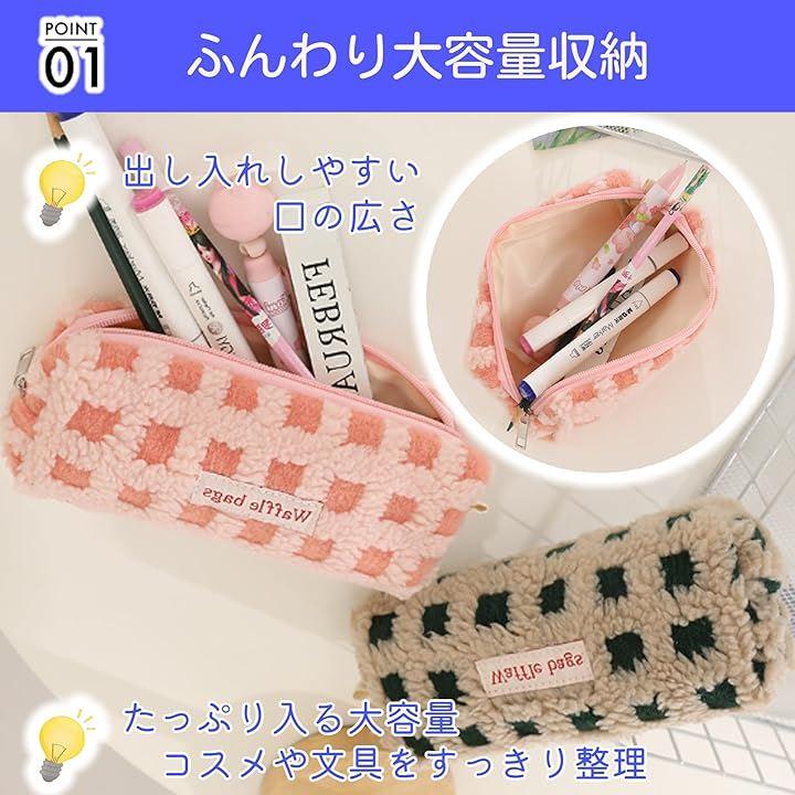「大容量収納」たくさんの文具やコスメアイテムを収納できるこのペンケースは、実用性に優れています。