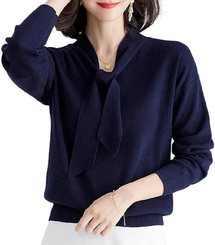 1枚で、雰囲気あるきれいめ感が完成する、ボウタイニットプルオーバー。