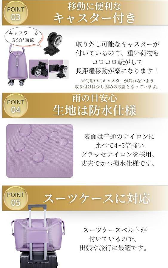 大容量なので、旅行はもちろんアウトドアや防災バッグ、入院の際のバッグとしても幅広く活躍します。