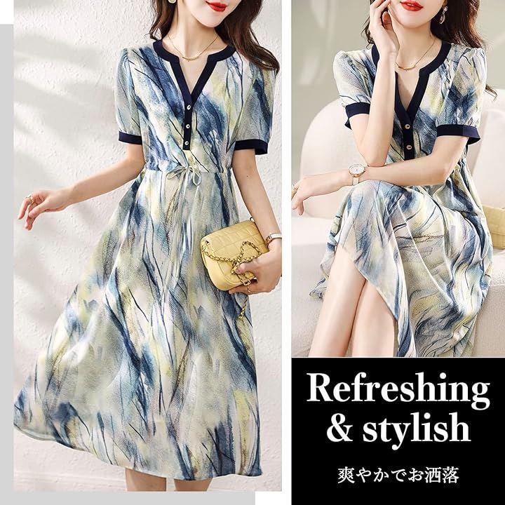 「一着でカンタンお洒落」爽やかなボタニカル柄と抜け感あるスキッパー襟が印象的なAラインワンピース。