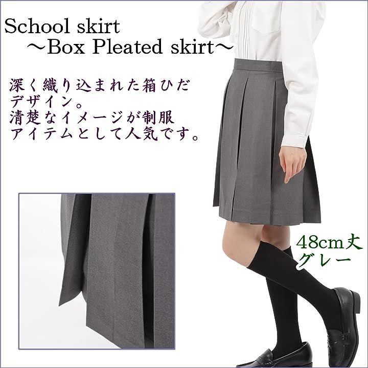 ボックスプリーツスカートは清楚で落ち着いた印象で学生の制服アイテムとして人気です。