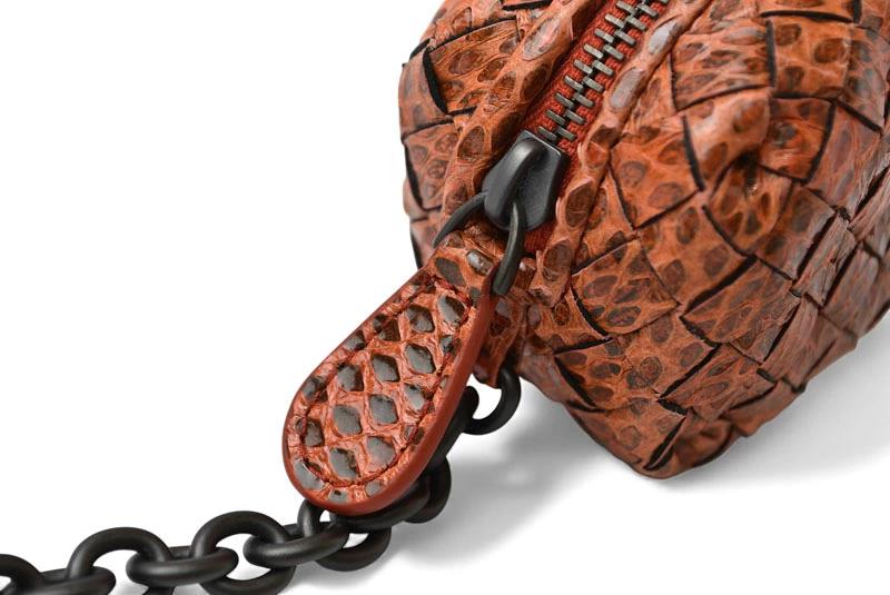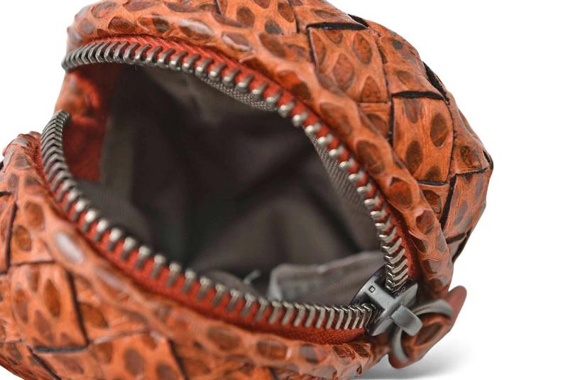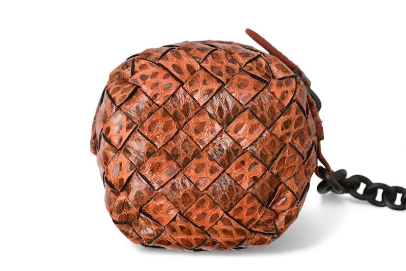 ボッテガヴェネタ キーホルダー/コインケース/ミニポーチ BOTTEGA VENETA イントレチャート 474569 VT201 6542 オレンジ系 スネーク柄