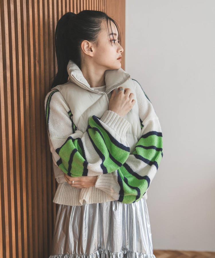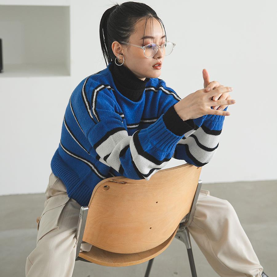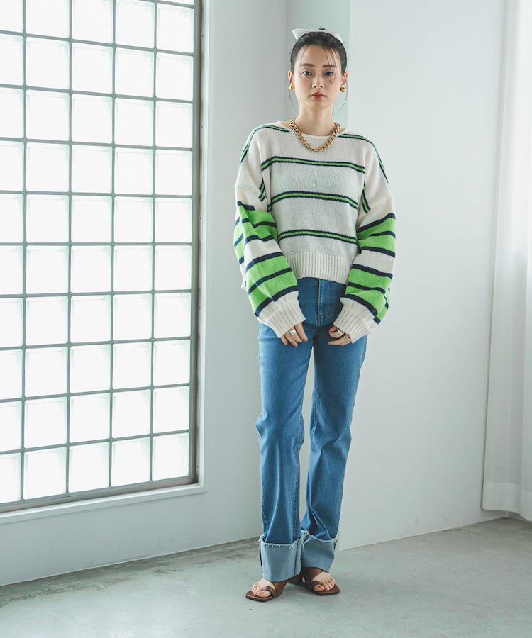 ピッチの違うボーダーとアクセントになるカラー配色がpointのボーダーニットトップス