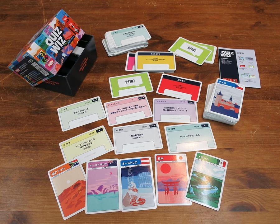 通常1-5営業日で発送【新品未開封品】「クイズウィズ」は、プレイヤー同士が協力して、国名とその国に関する正確な条件を一致させる協力型のクイズゲームです。