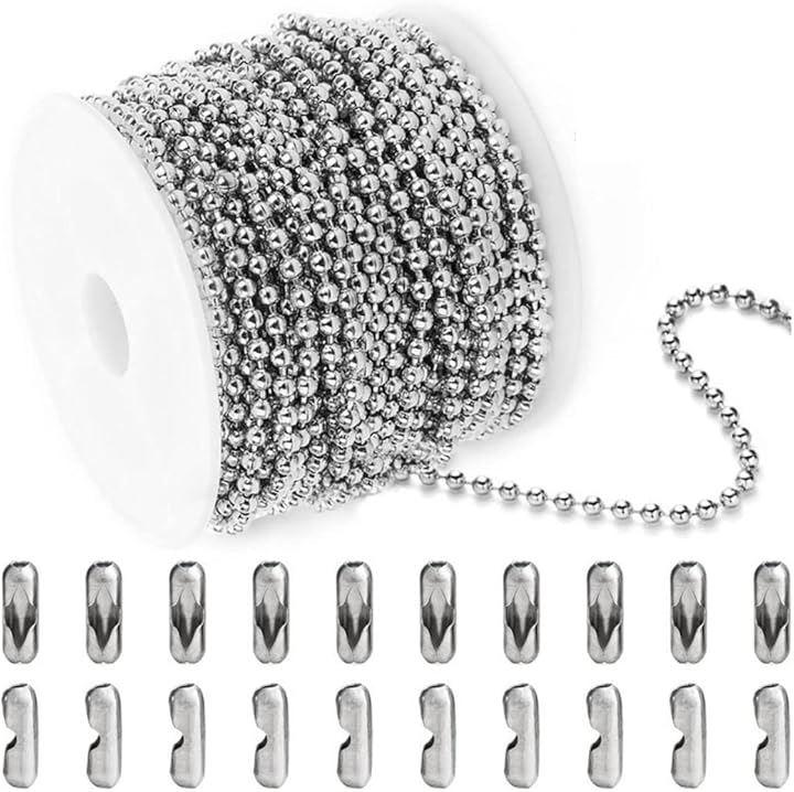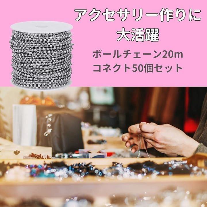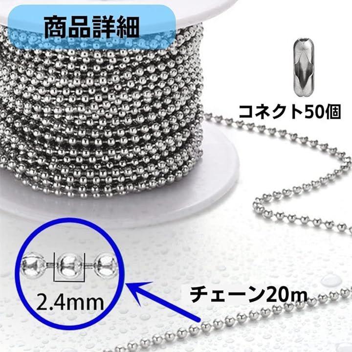 「商品詳細」ボールチェーン約20m:チェーン太さ2.4mm:コネクター50個入り:ステンレス素材