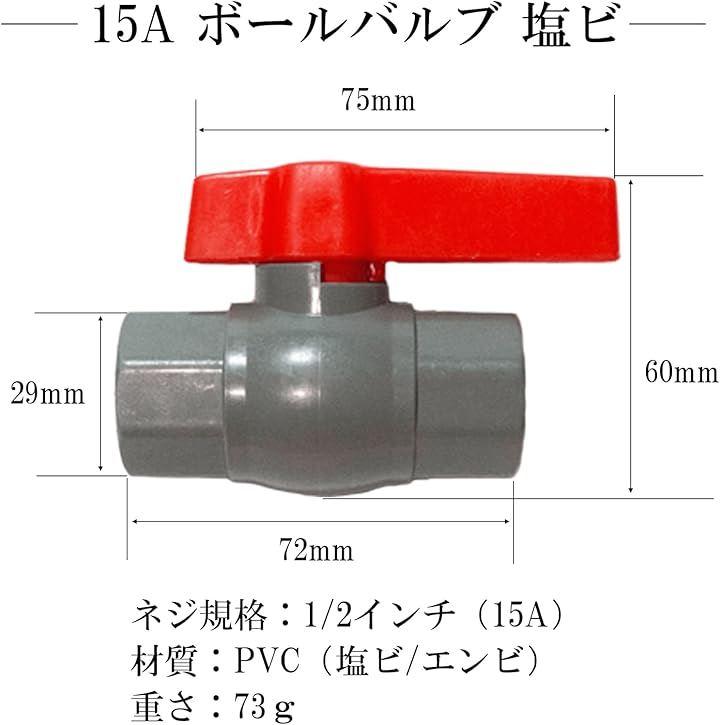 塩ビ製のボールバルブは、耐薬品性に優れ、錆びる心配がないため、PVCは傷がついても錆びない、DIYでの水回りの増設や補修に最適なアイテムです。