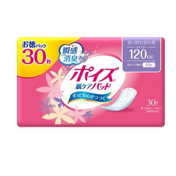 製品の特徴●クレシア ポイズ 肌ケアパッド 多い時も安心用 レギュラー 120cc 吸水ケア専用●すぐに消臭ニオイ戻りも防ぐ、さらに24時間抗菌でニオイ菌の増殖を防ぐ。●水分をしっかり閉じ込め、表面のさらさら感がつづく。●2枚重ねの立体ギャザーとサイドギャザーが横モレを防ぐ。●つけ心地ふんわり。●素肌と同じ弱酸性。●ムレにくい全面通気性。●かわいい花柄エンボス。●医療費控除対象品。●尿漏れパッド/軽失禁パッド●吸収量の目安:120cc●サイズ:幅10.5×長さ27cm