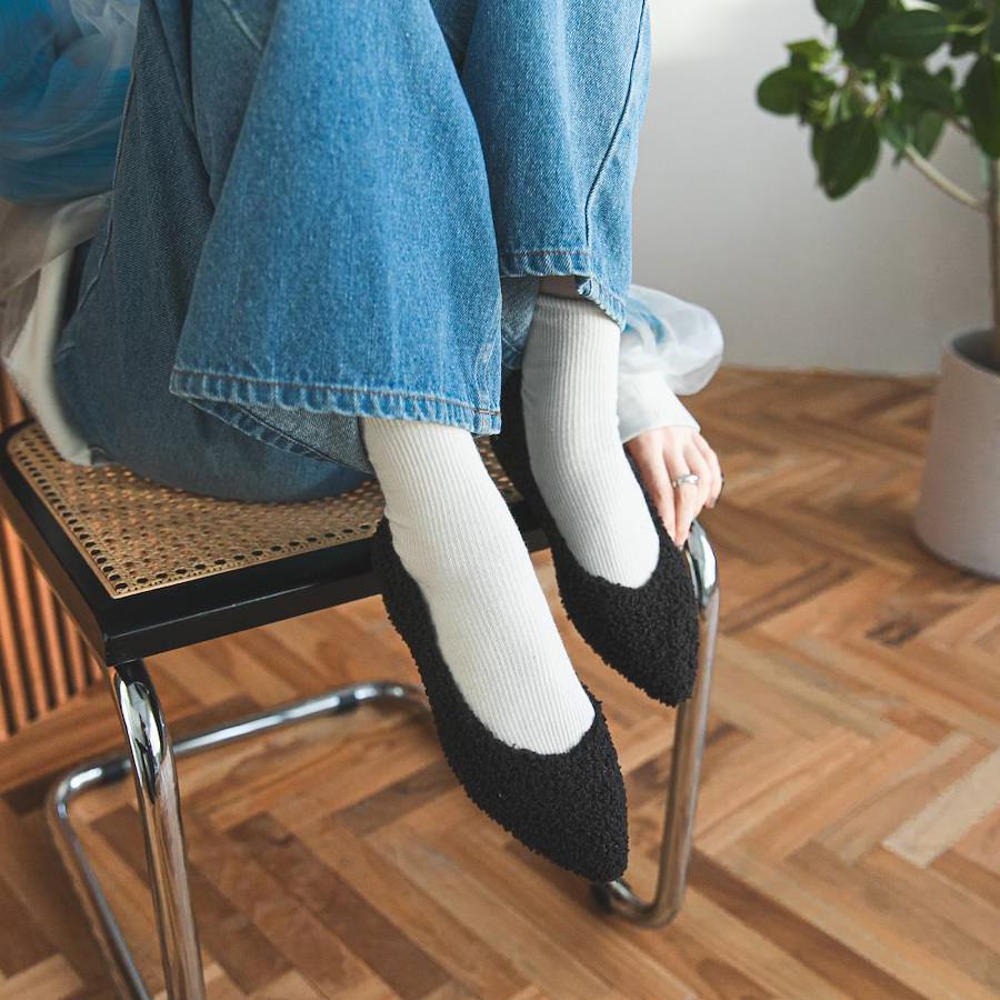 【Design】ポインテッドトゥの大人カッコイイ雰囲気にプードルファーで甘いエッセンスをプラスして。大人可愛い足元を演出してくれます。
