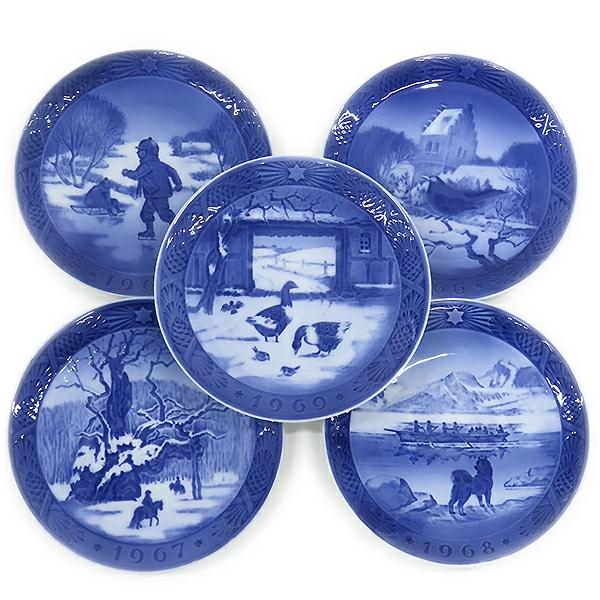 ロイヤルコペンハーゲン ROYAL COPENHAGEN 食器 イヤープレート 1960年代 10枚セット 陶磁器 ブルー×ホワイト ヴィンテージ 北欧 飾り皿 絵皿 1960~1969 メンズ レディース ユニセックス定番 人気 美品 【中古】