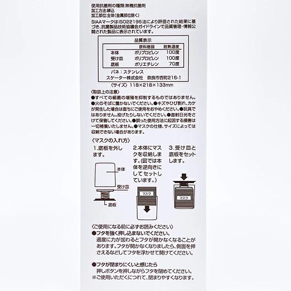 花粉症・風邪予防の必需品“マスク”を可愛く収納できちゃう抗菌マスクストッカーです。1回ポチっと押すだけでポンとマスクが出てくる便利アイテム◎普通サイズのマスクが約50枚収納可能◎さらにマスクが減っても取り出しやすいバネ式リフトアップ構造!ぐちゃぐちゃになりがちなマスクも綺麗に収納しちゃおう♪可愛いデザインだからお部屋や玄関やリビングに置いてみませんか♪※マスクの仕様、サイズによっては収納できない場合があります。