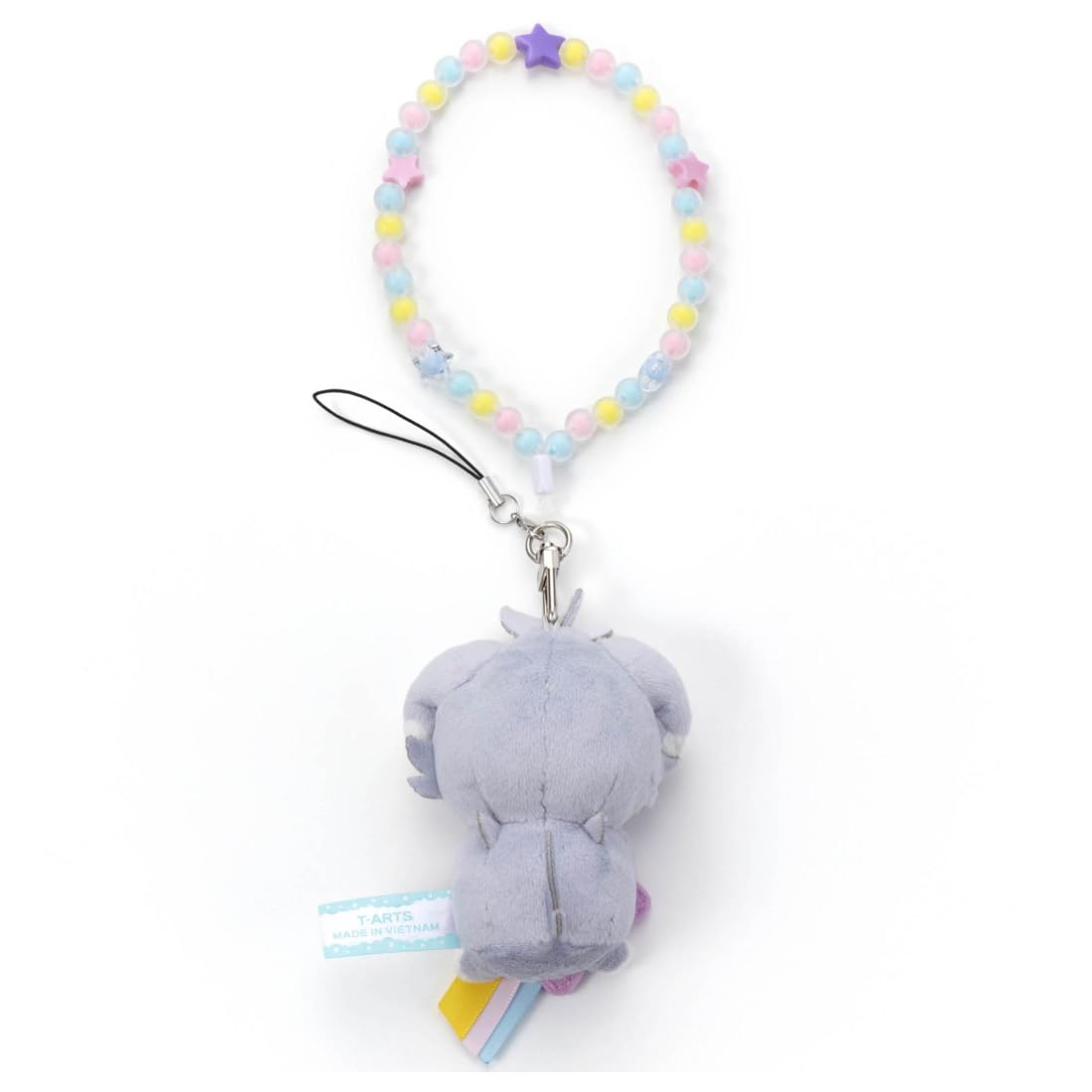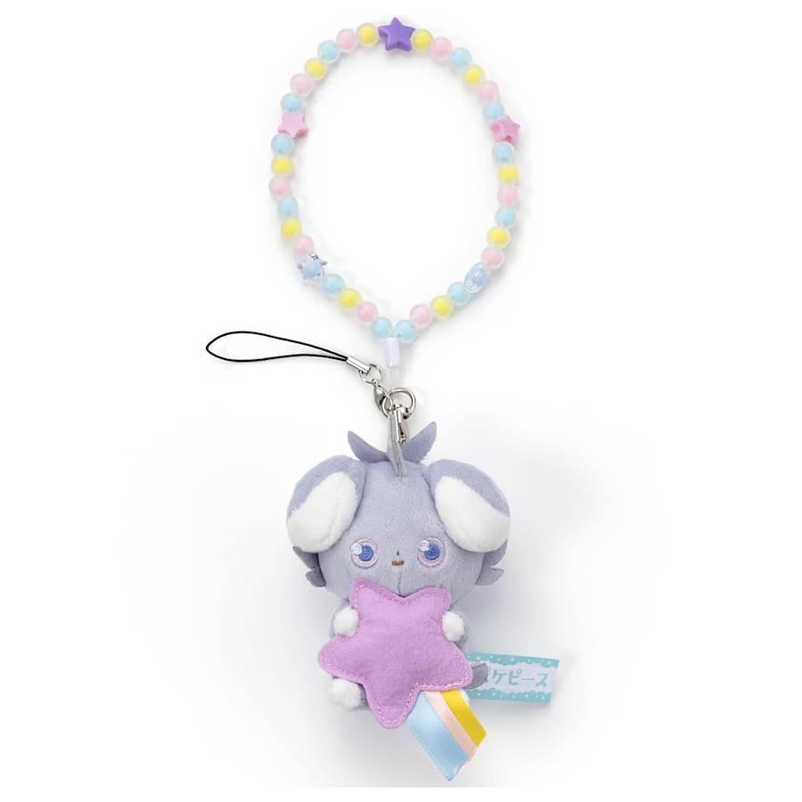 キラキラビーズと星がモチーフの可愛いぬいぐるみストラップです。色々なビーズが沢山ついたストラップと星をもっているポケピースのぬいぐるみマスコットを組み合わせた可愛いぬいぐるみストラップです。