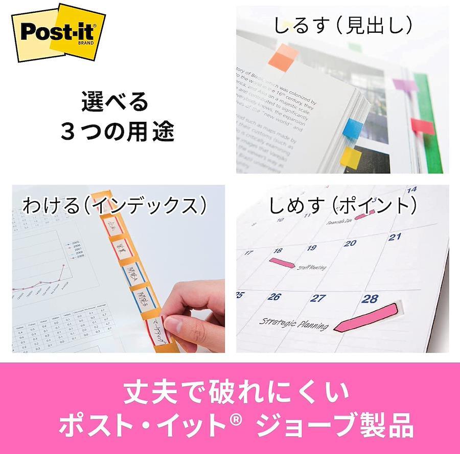 ●ふせんサイズ:44×12mm。カタログのページや書類の分類、見出しに便利なサイズのポストイット付箋です。12mm幅で文字も書き込めるサイズです。●くり返し貼ったりはがしたりでき、相手をいためません。●丈夫で破れにくい、フィルム素材のポストイット製品で、長期間でもキレイに保存できます。のりの部分が透明なので下の文字や画像を隠しません。コピーをする時に紙のふせんのようにいちいちはがす手間がはぶけます。文字を書き込むこともでき、細かな分類、数多くの見出しが必要な時に活躍します。●1枚ずつ連続して取り出せるポップアップ式です。●20枚x5パッド。●ポインター、透明見出し、ふせんの3つのポストイット製品をセットにしました。手帳やカバンに常備すれば、いろいろな場面で便利に使えます。●色分けにも便利な混色タイプ。●色:透明見出し:ローズ、スカイブルー ポインター:ブライトグリーン、イエロー、オレンジ ふせん:ピンク●ケースに再生PETを使用。●ベースフィルムに再生PET50%以上使用。グリーン購入法適合。●GPNエコ商品ねっと掲載。