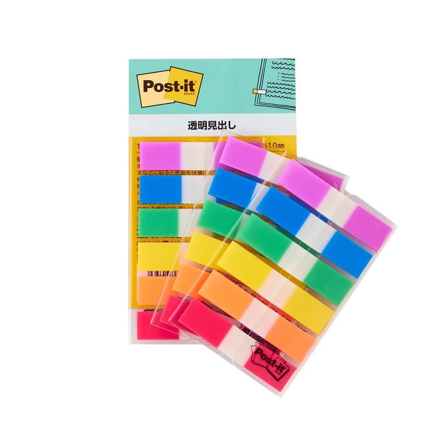・じょうぶで破れにくい、フィルム素材のポストイット製品。・貼ると透明になり、下の文字や絵などを隠しません。・1枚ずつ取り出せるポップアップ式です。・本や書類で、ページの細かい分類や数多くの見出しが必要な時に色数が多く、色分けに便利。・フィルム素材なので長期間でもキレイに保管できる。また、はがしたい時にキレイにはがせる。くり返し貼ったりはがしたりでき、破れにくい。