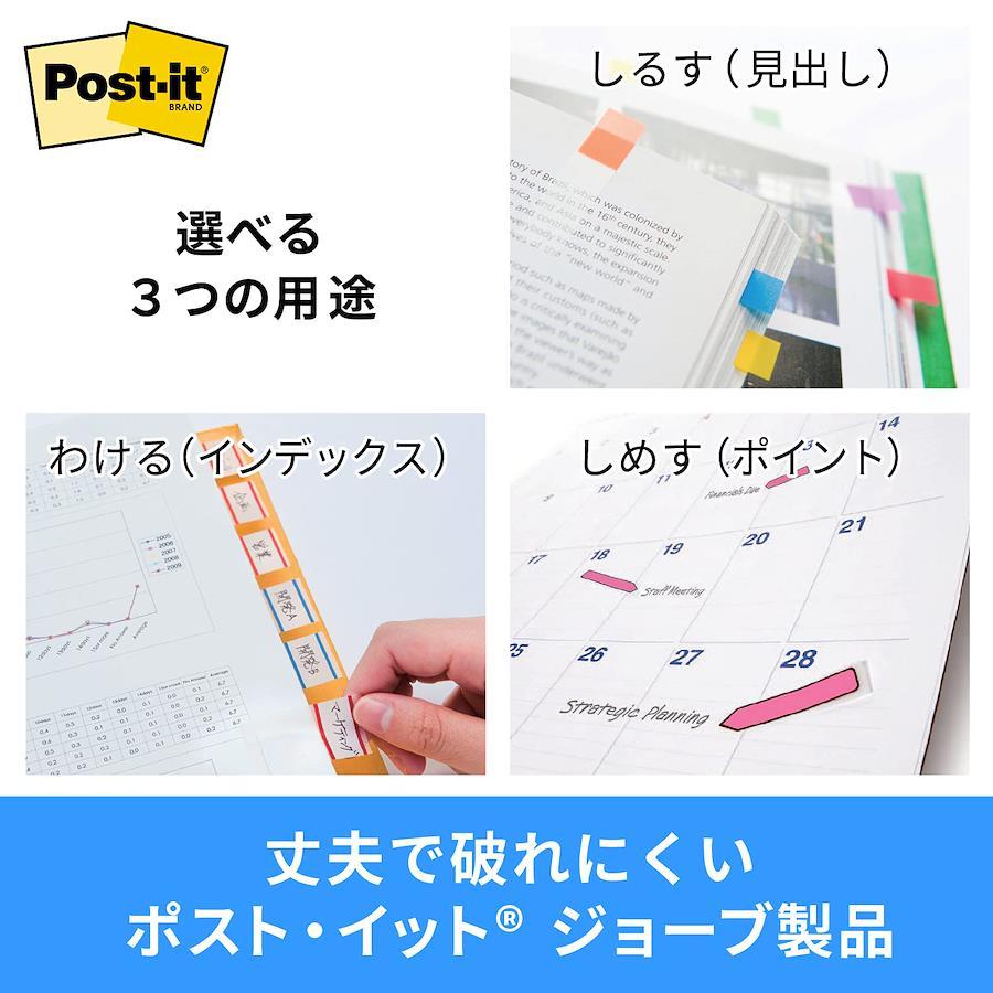 ●ふせんサイズ:44mm×23mm。インデックスに最適なサイズのポストイット付箋です。A4縦に貼り付けることが可能なサイズで、書類やカタログの分類に便利です。●くり返し貼ったりはがしたりでき、相手をいためません。●丈夫で破れにくい、フィルム素材のポストイット製品で、長期間でもキレイに保存できます。のりの部分が透明なので下の文字や画像を隠しません。コピーをする時に紙のふせんのようにいちいちはがす手間がはぶけます。文字を書き込むこともでき、細かな分類、数多くの見出しが必要な時に活躍します。●1枚ずつ連続して取り出せるポップアップ式です。●50枚x2パッド。●色:ブルー●ケースに再生PETを使用。●ベースフィルムに再生PET50%以上使用。グリーン購入法適合。●GPNエコ商品ねっと掲載。